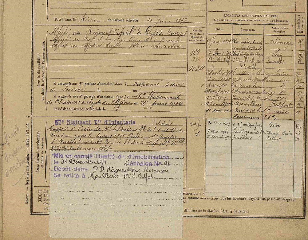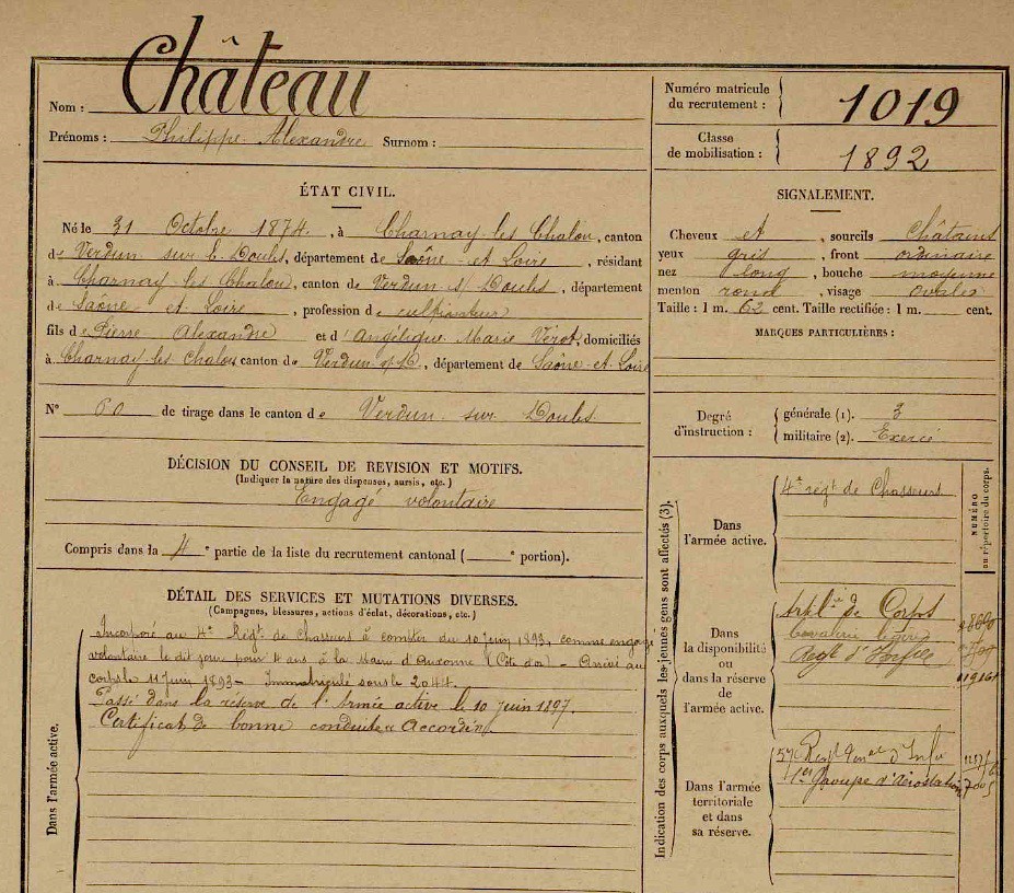 Source : Familiale et Fiche matricule des archives départementales de la Côte d'Or-21-Cote R 2306_ 0030