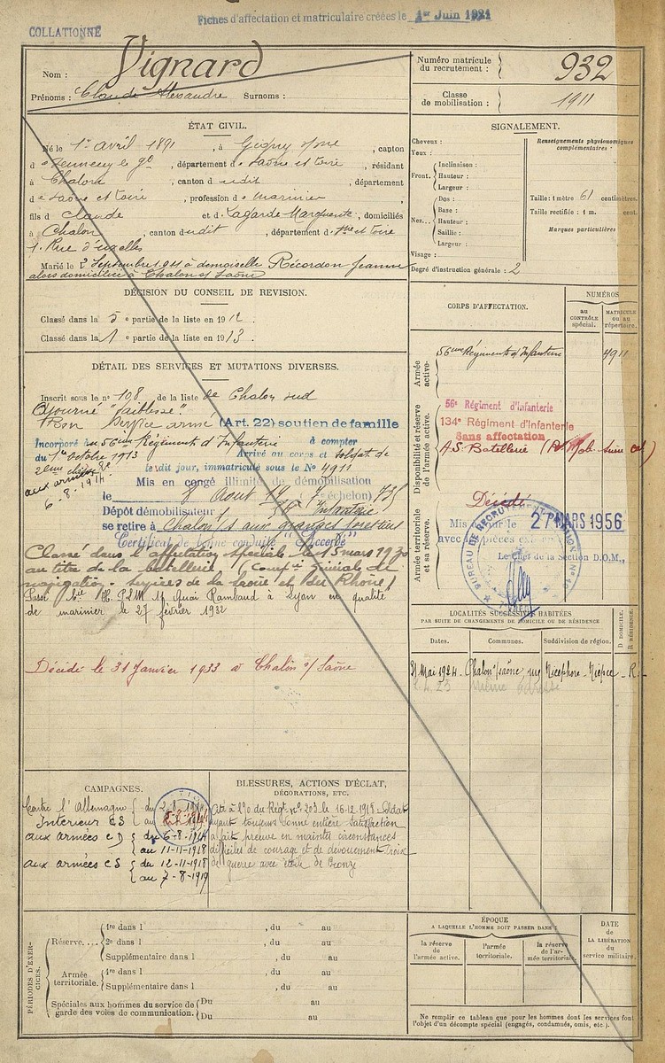 Merci à la famille de Claude Alexandre VIGNARD pour ce témoignage