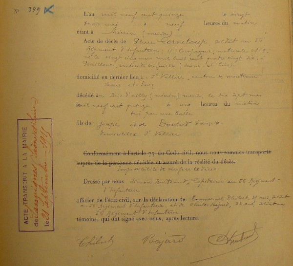 Lieu précis de décès : bois d`Ailly