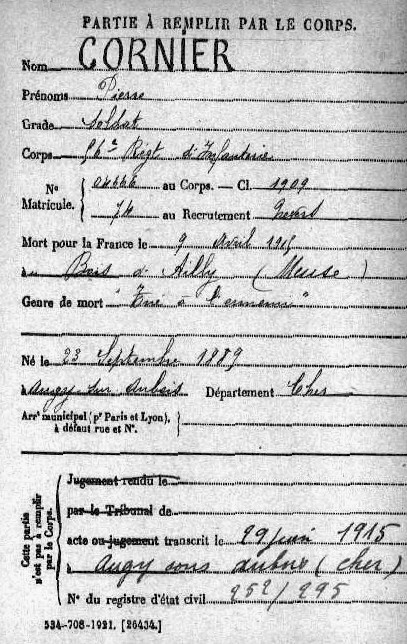 Epouse : Mme Vve CORNIER née GOUSSET