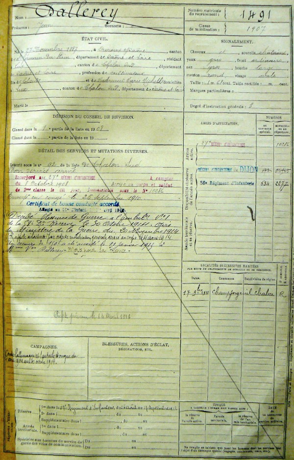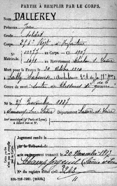 Lieu précis de décès : Ambulance n°1 de la 52° Division