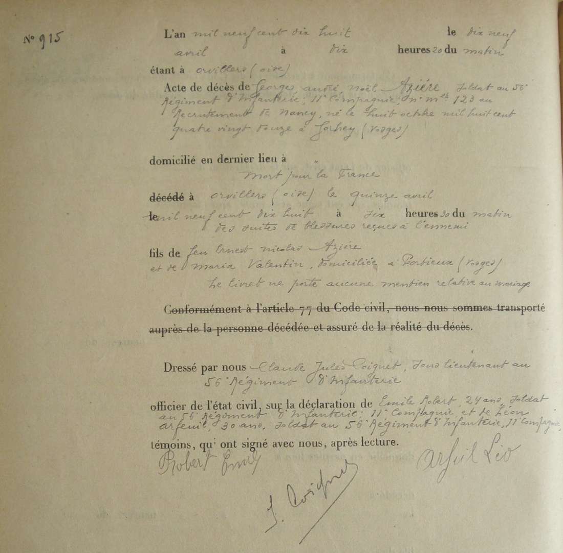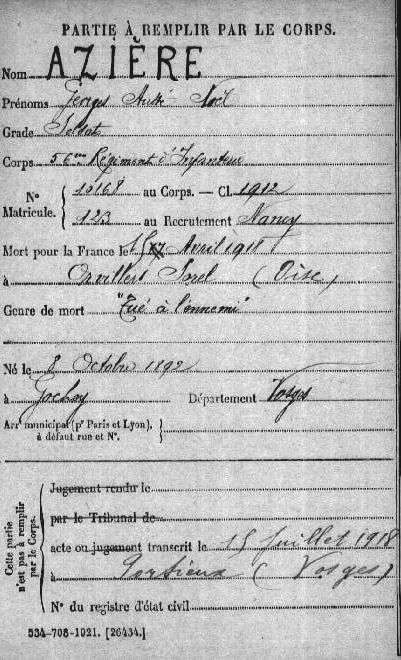 Père : AZIÈRE Ernest Nicolas