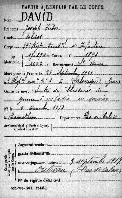 Lieu précis de décès : Hôpital auxiliaire n° 1