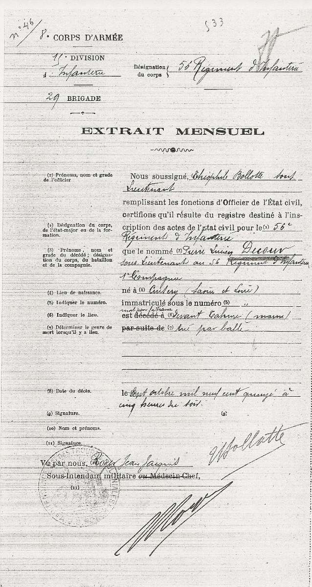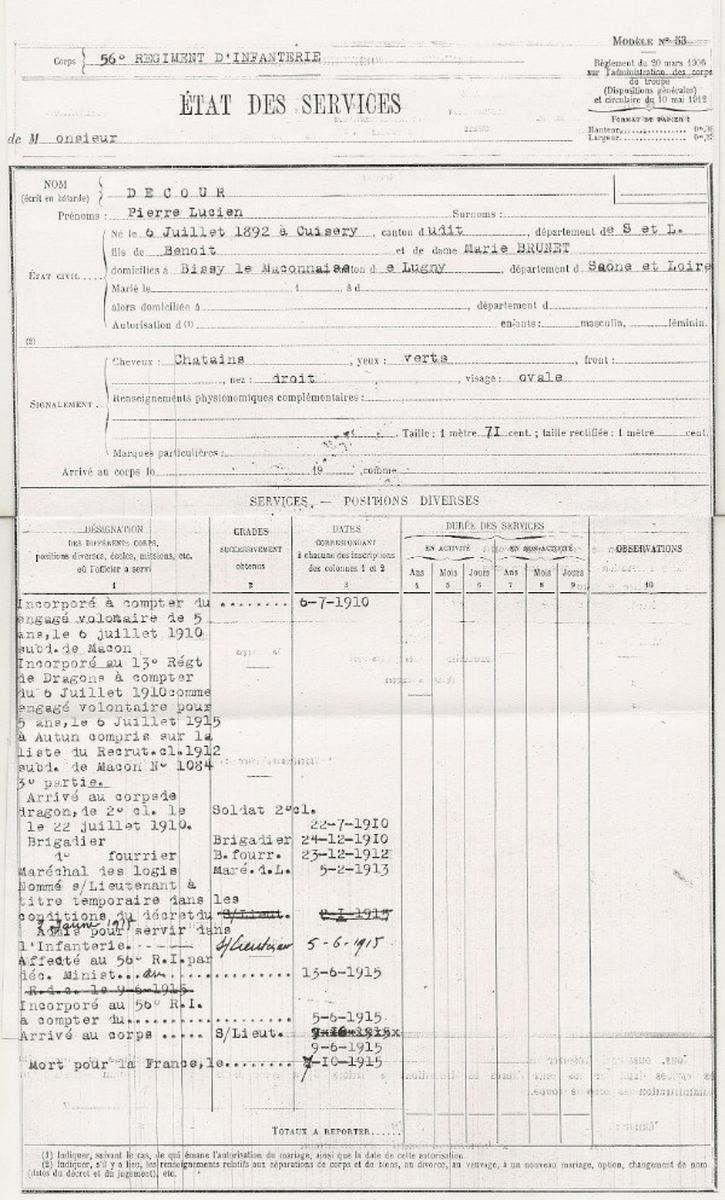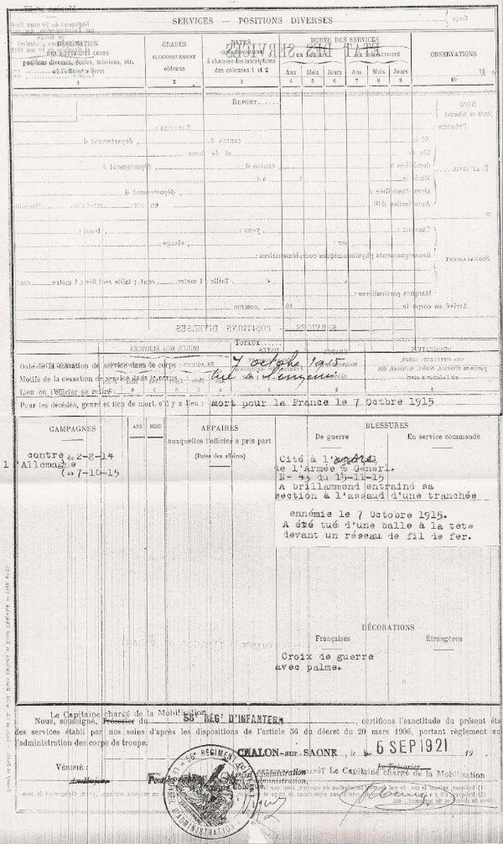 Genre de décès : Tué à l`ennemi