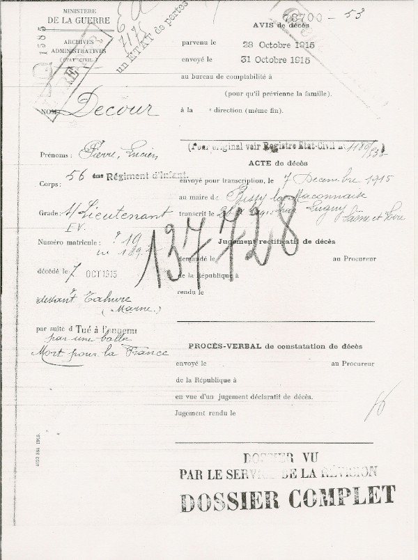Lieu de décès : Tahure
