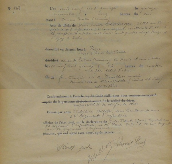 Lieu de décès : Tahure