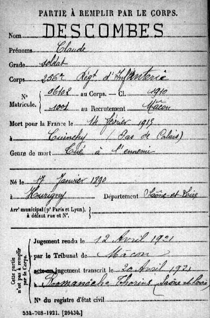 Lieu précis de décès : Moulin de Cuichy