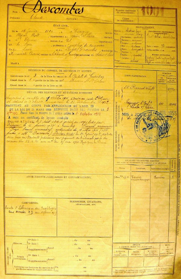 Genre de décès : Tué à l`ennemi