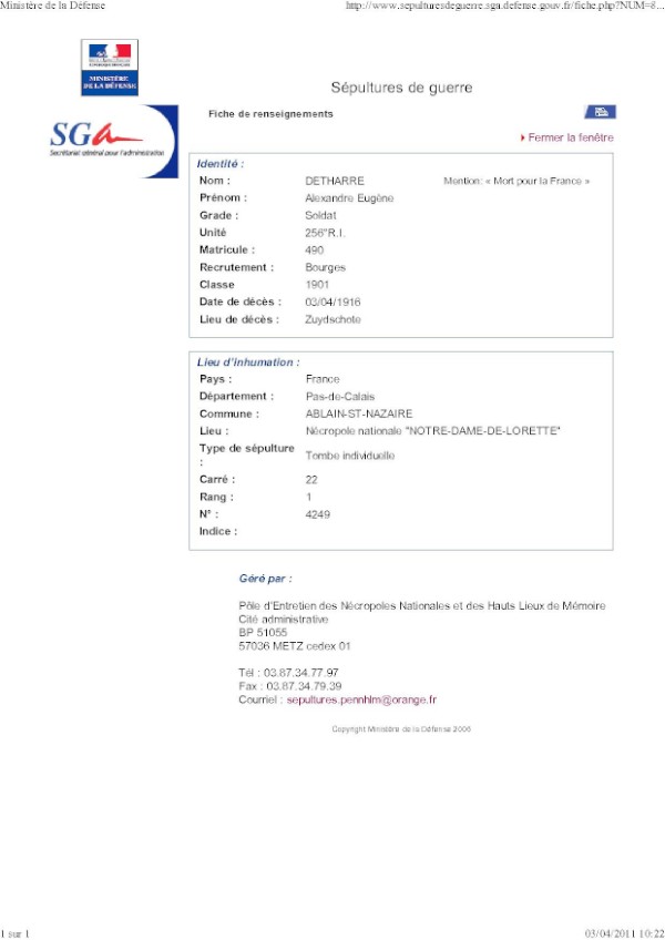 Genre de décès : Tué à l`ennemi