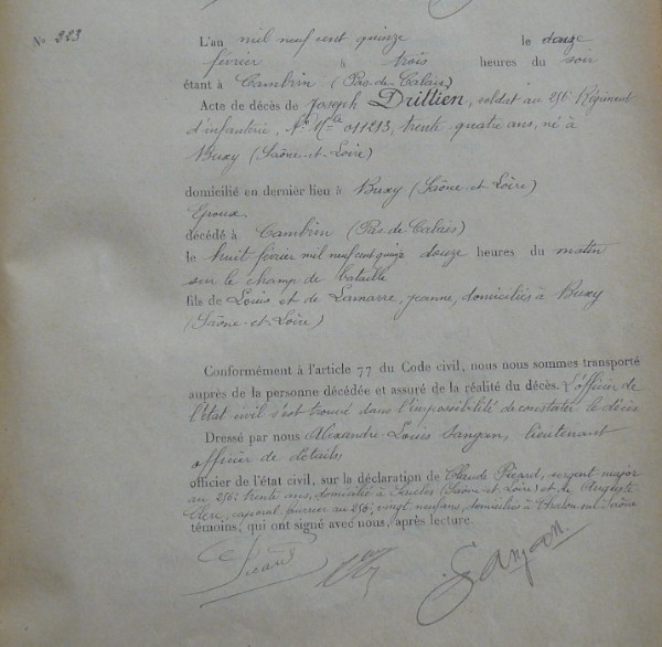 Lieu de décès : Cambrin