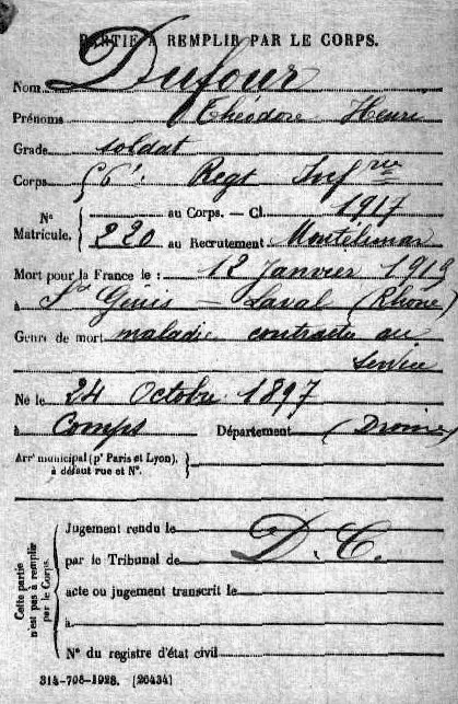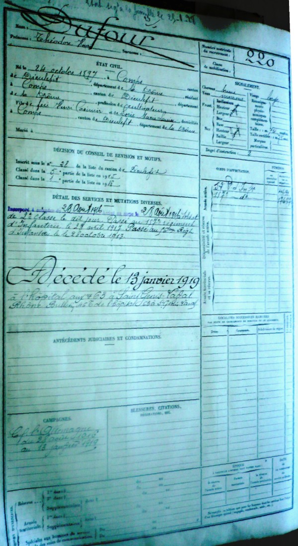 Lieu précis de décès : Hôpital auxiliaire N°63