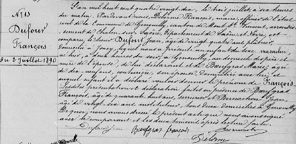 Père : DUFOUR Jean