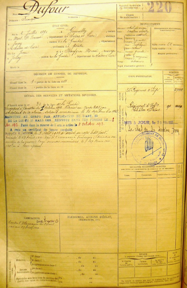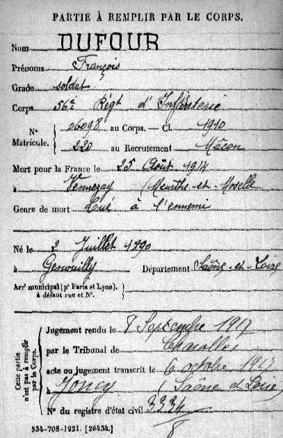 Epouse : Vve DUFOUR GRESSARD