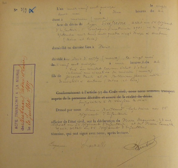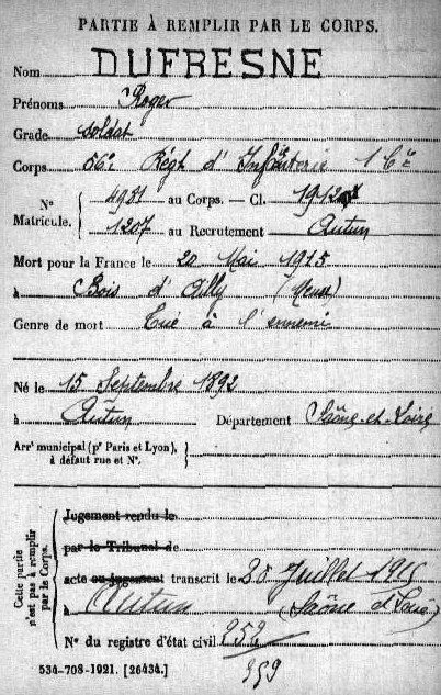 Lieu précis de décès : Bois d`Ailly