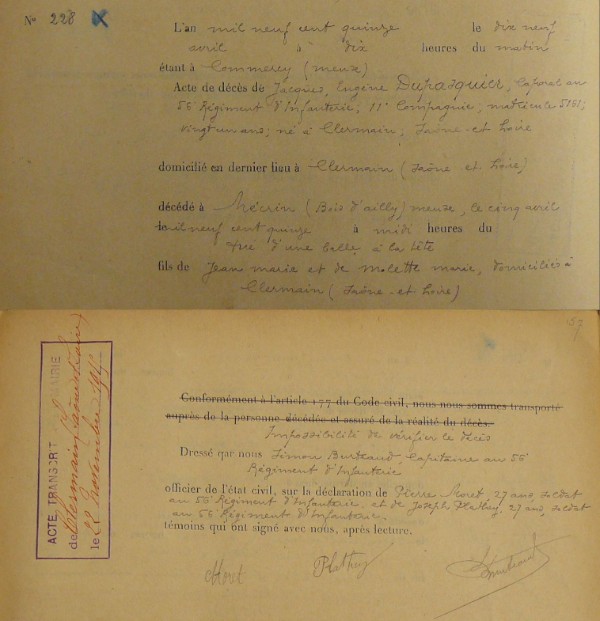 Source : MDH et Acte de décès militaire