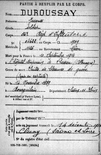 - Fait prisonnier le 20/08/1914 à Gosselmingen (A l'époque, Lorraine annexée par l'Allemagne).