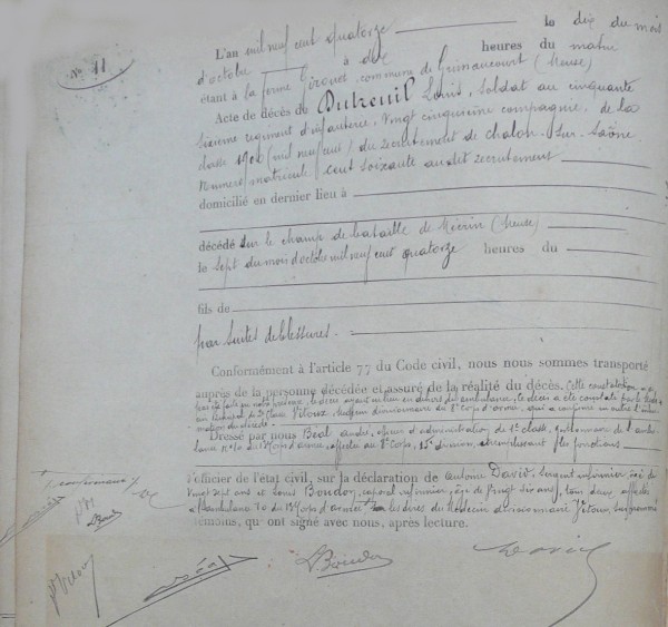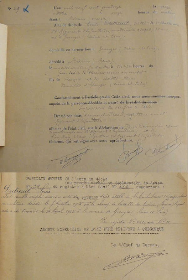 Marié à Granges (71) le 27/02/1908. Enfant : Anna 4 ans