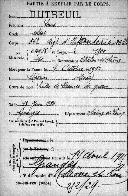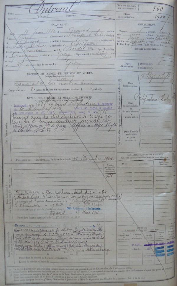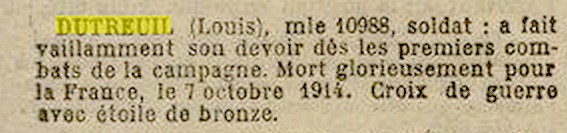 Médaille Militaire à titre posthume, Décret du 24/03/1920 paru au JO du 15/05/1920.