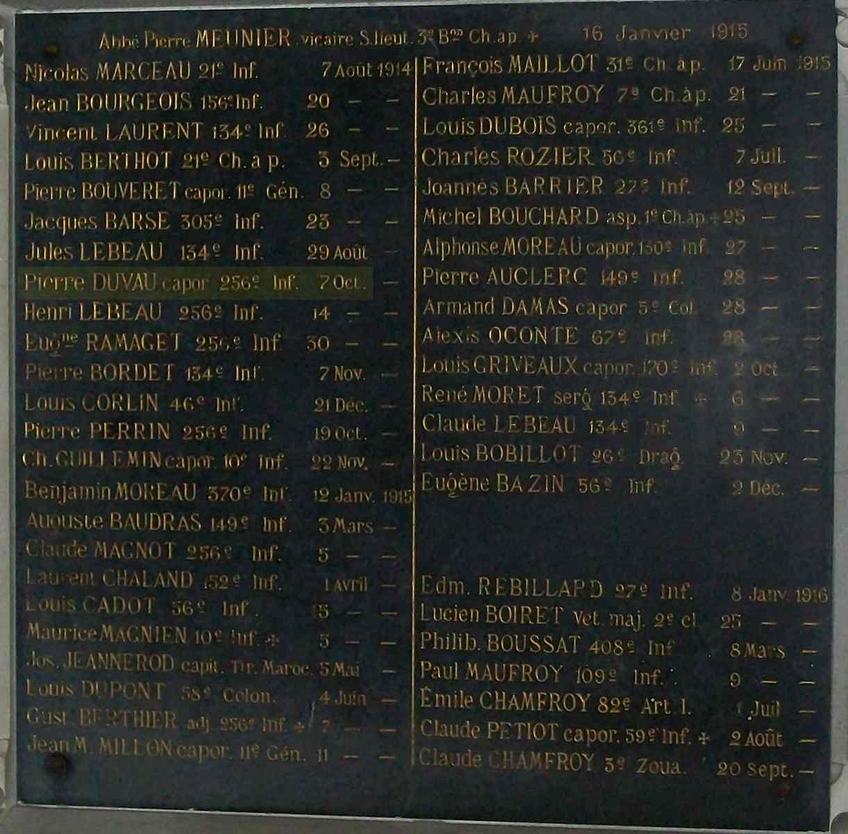 Inscription sur le monument : Sennecey-le-Grand et St-Sernin-du-Plain (71)