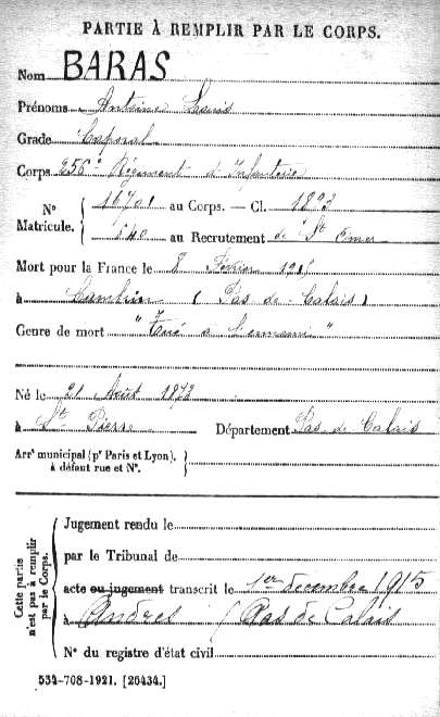 Père : BARAS Jacques Antoine