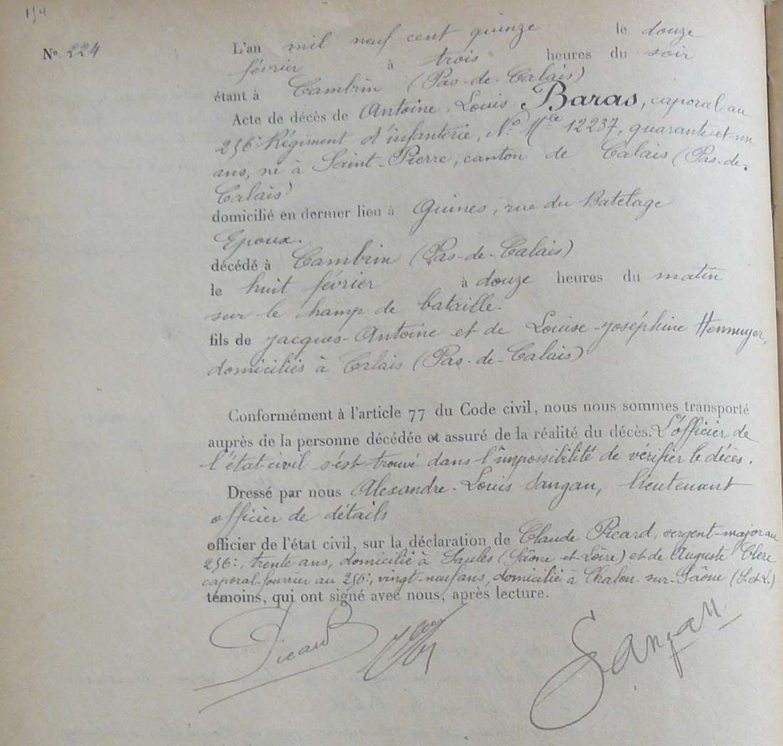 Lieu de décès : Cambrin