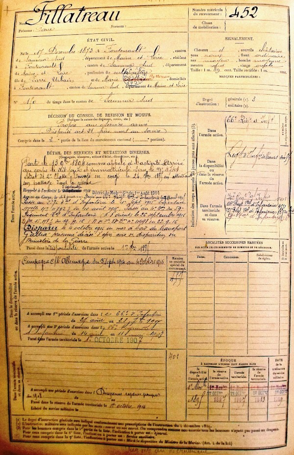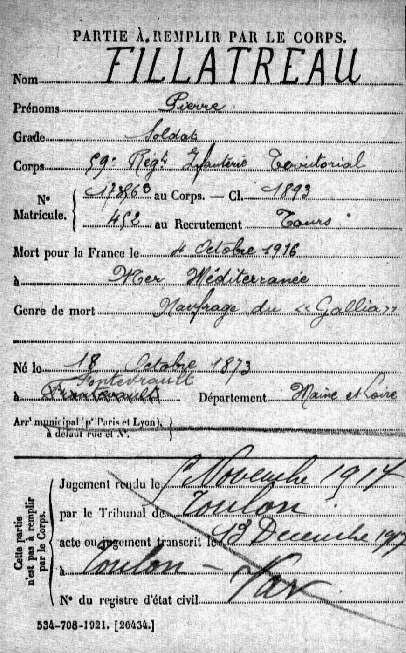 Père : FILLATREAU Pierre Urbain