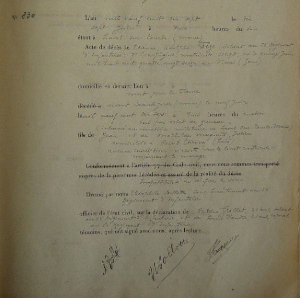 Genre de décès : Tué à l`ennemi