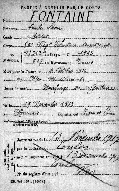 Genre de décès : Naufrage du Gallia