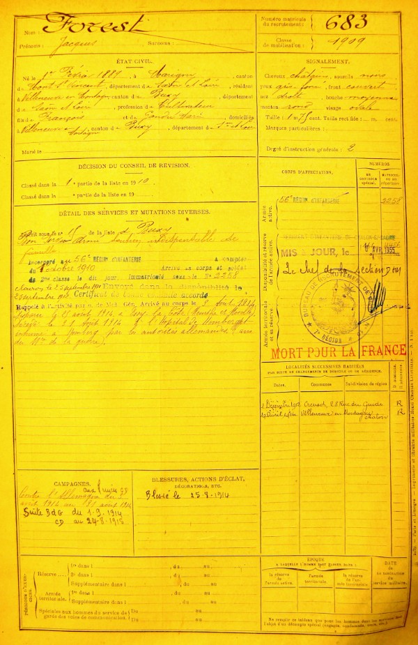 Inscription sur le monument : Villeneuve-en-Montagne (71)