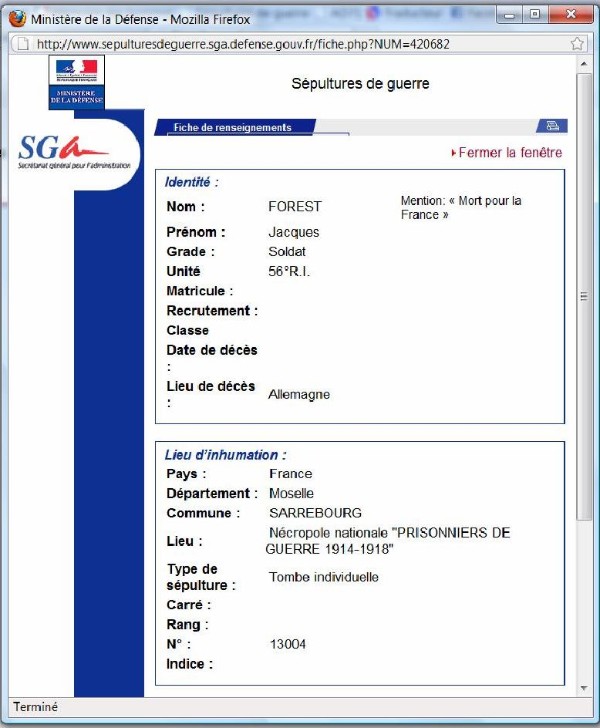 Sépulture : Nécropole nationale Prisonniers de Guerre 1914-1918 à Sarrebourg (57)