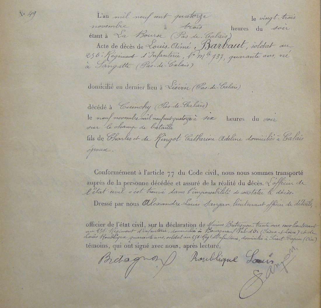 Lieu de décès : Cuinchy