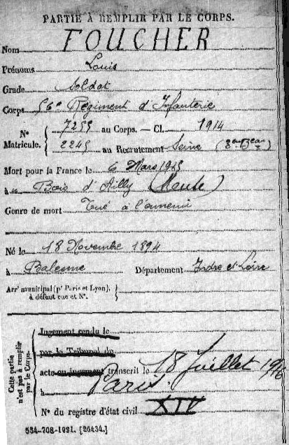 Lieu de décès : Bois d`Ailly