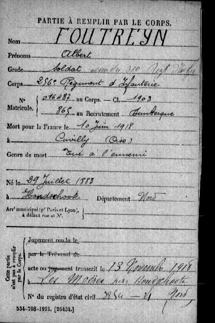 Marié le 28/06/1910 à Godewaersvelde (59)