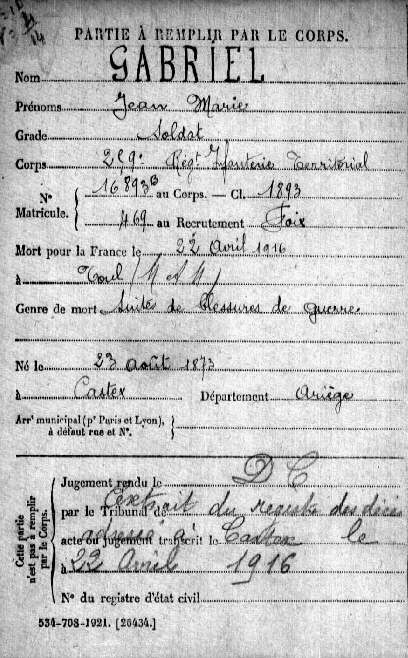 Genre de décès : Suites blessures de guerre