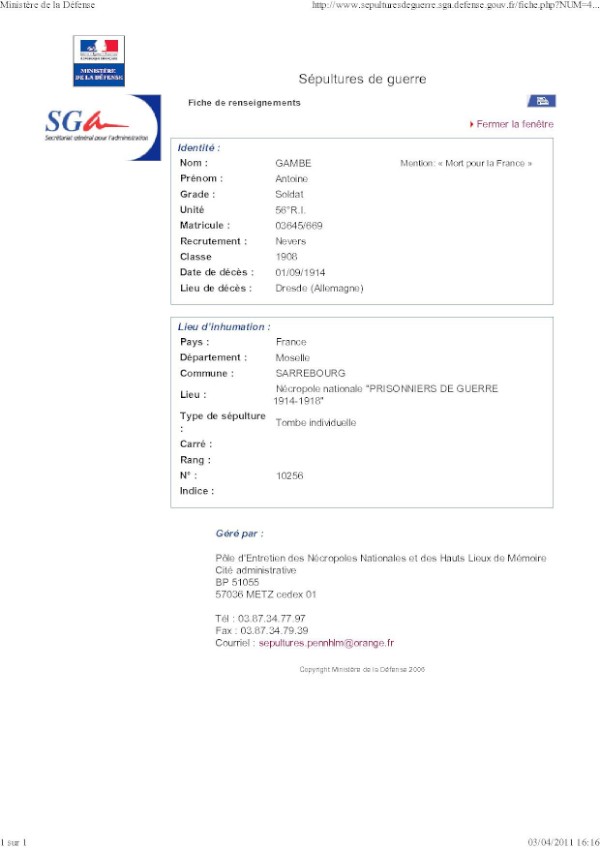 Genre de décès : Blessures de guerre