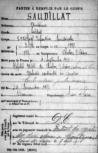 Accordé un secours immédiat de 150frs. à la veuve, le 17/09/1916.
