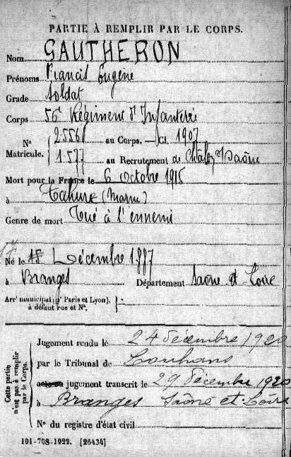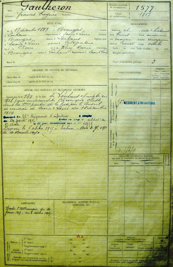Marié à Branges (71) le 12 mai 1913 Enfant : Marie 5 ans