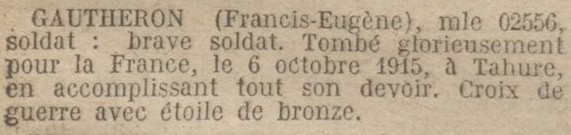 Croix de Guerre avec Etoile de Bronze à titre posthume