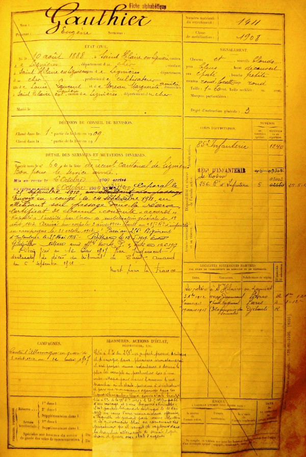 Genre de décès : Tué à l`ennemi