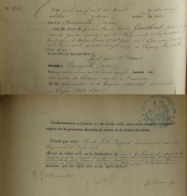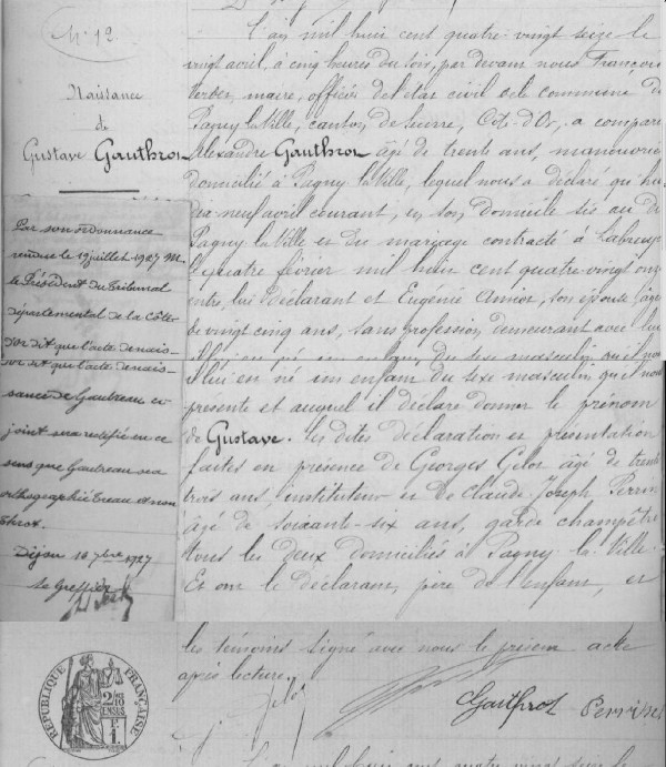 Changement orthographe nom patronymique GAUTREAU et non GAUTROT (Ordonnance du 19 juillet 1927 du Tribunal départemental de la Côte-d'Or.