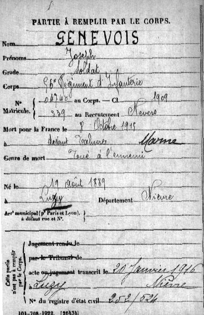 AU 17/09/1919 EPOUSE VEUVE NON REMARIEE