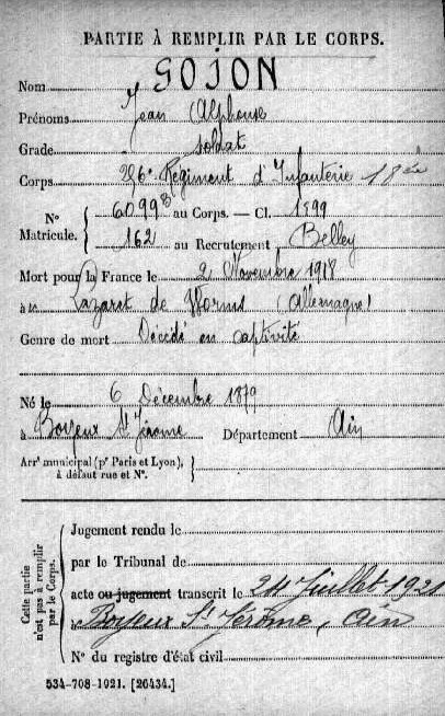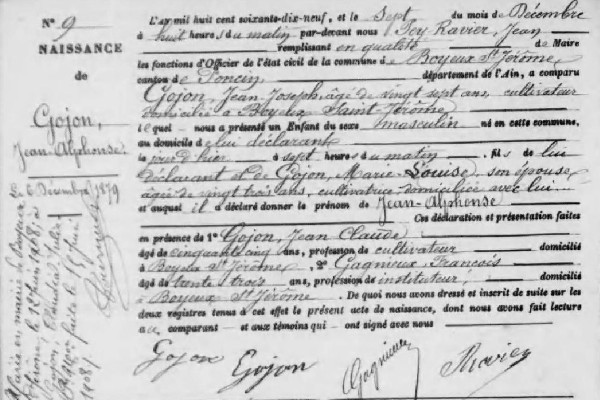 Lieu de naissance : Boyeux-Saint-Jérôme