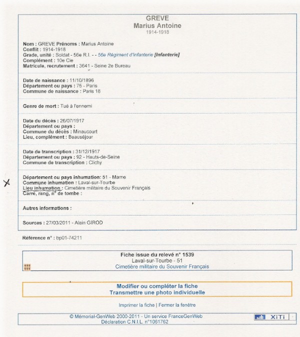 Sépulture : Cimetière militaire du Souvenir Français à Laval-sur-Tourbe (51)