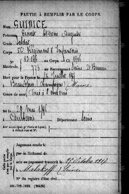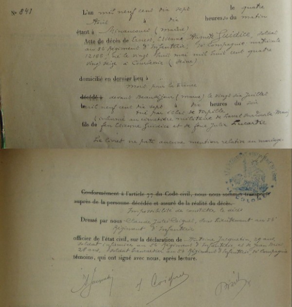 1ère inhumation au cimetière militaire de Laval sur Tourbe (51)