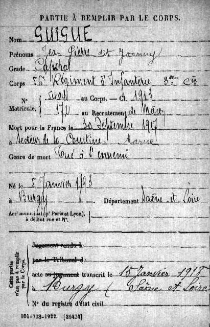 Genre de décès : Tué à l'ennemi