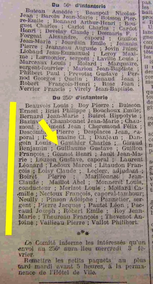 Avis de retour d'un colis = Courrier de S&L du 28-01-1915 Enfants : Germaine Hélène Yvonne 6 ans, Marguerite Augustine 4 ans.