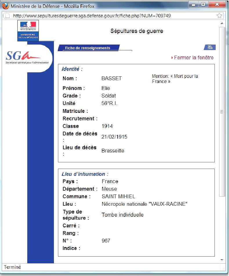 Sépulture : Nécropole nationale Vaux Racine à Saint-Mihiel (55)