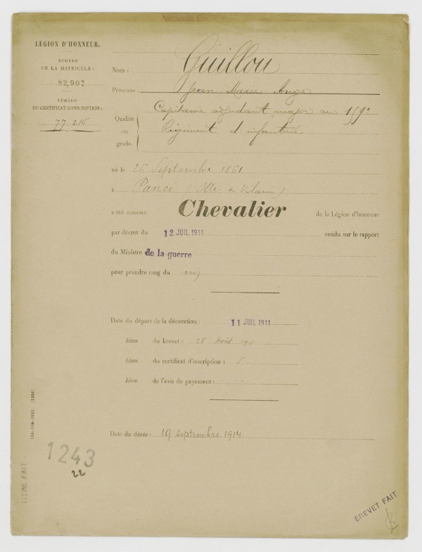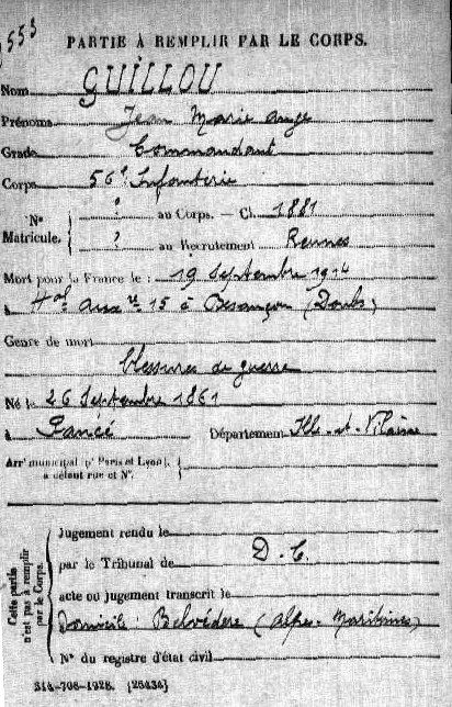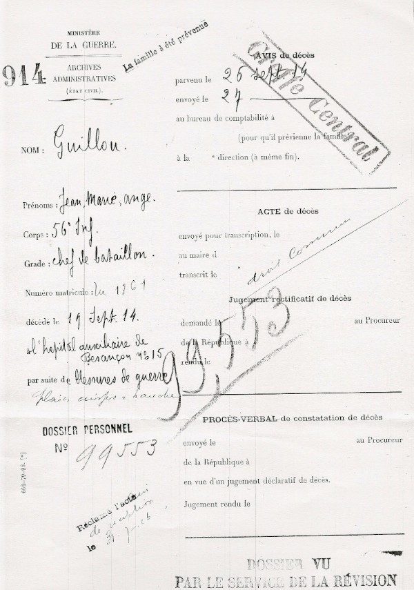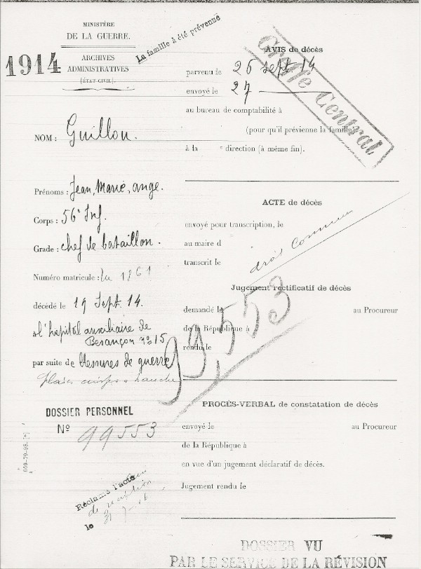 Lieu précis de décès : Hôpital auxiliaire n°2 ,,,