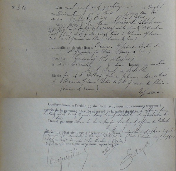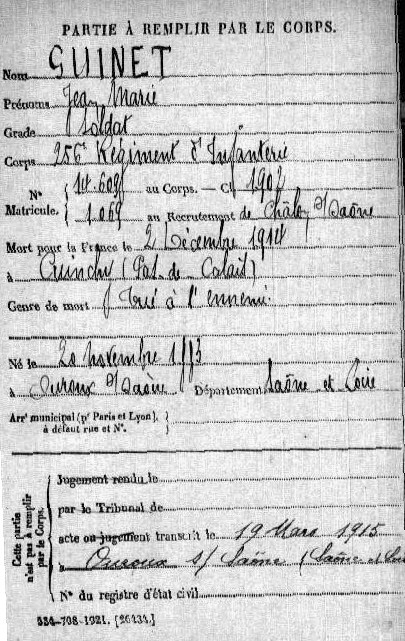 Lieu de décès : Cuinchy