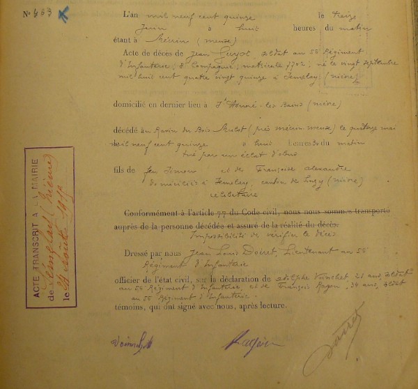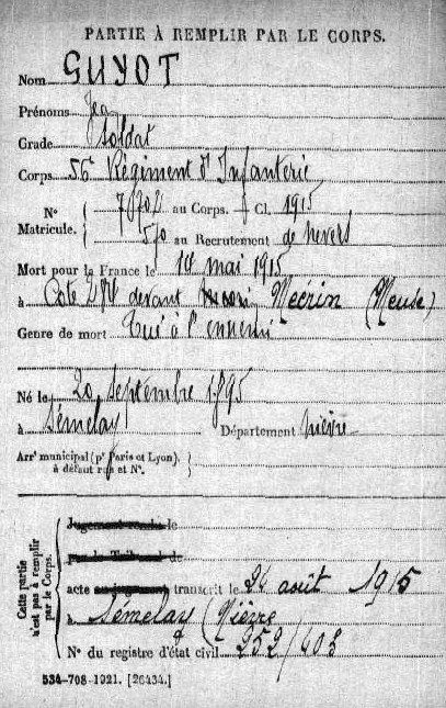 Mère : Mme Vve GUYOT née ALEXANDRE Françoise
